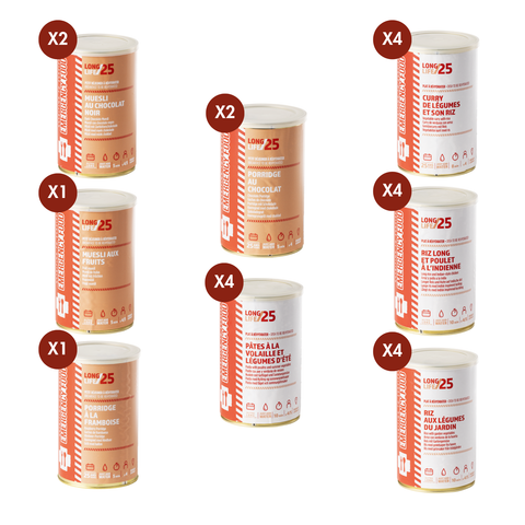 Nous accompagnons particuliers, familles, professionnels et collectivités souhaitant disposer d’une solution alimentaire simple, durable et prête en quelques minutes. Notre gamme couvre petits-déjeuners, plats et desserts, en sachets individuels ou en conserves longue durée jusqu’à 25 ans de conservation.