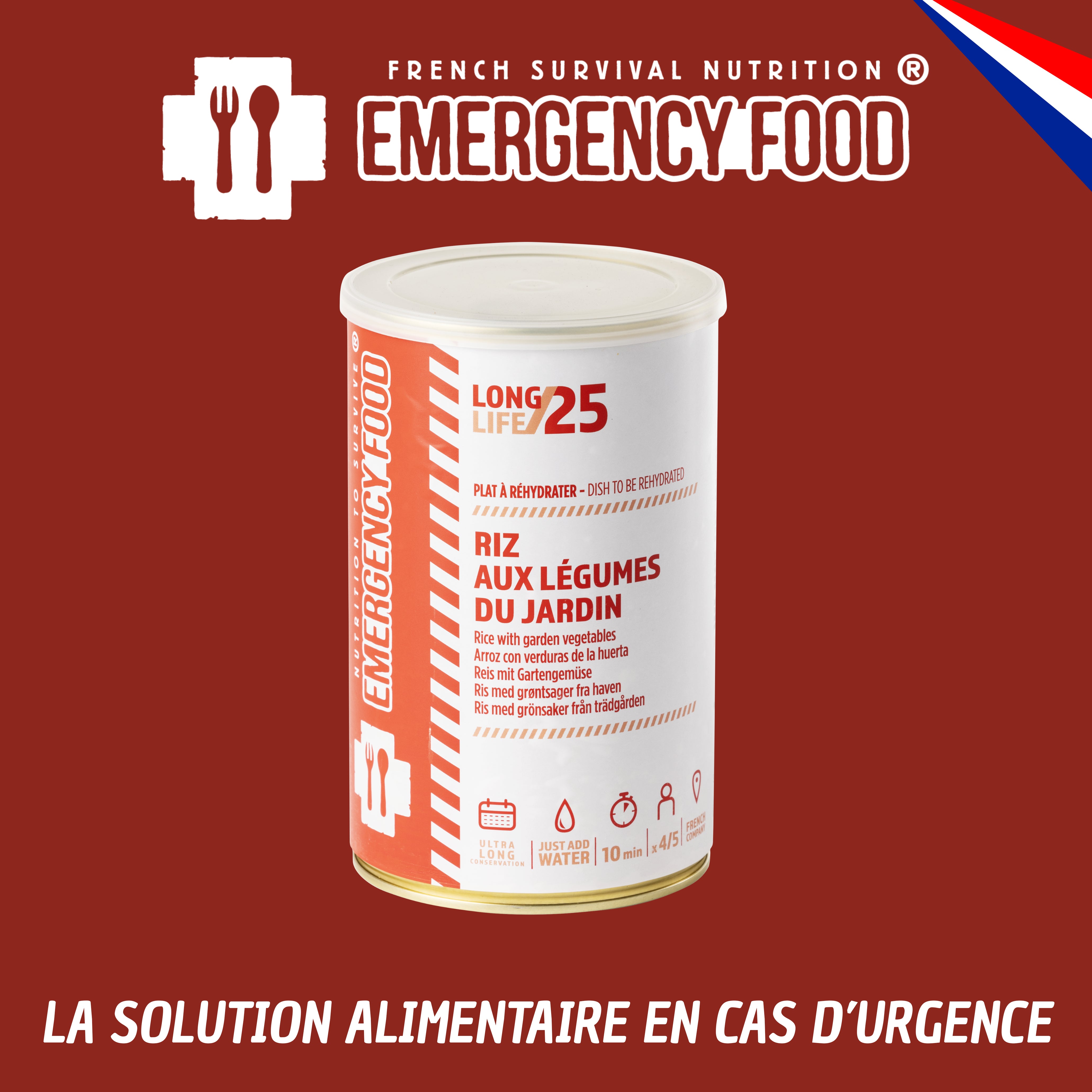 Les produits Emergency Food® vous permettent de constituer des stocks de nourriture dans votre cave ou bunker afin de garantir votre survie et autonomie alimentaire en cas de pénurie lors d'inondations, guerres, pandémies, grèves... Nos produits sont fabriqués en France et conçus pour être conservés, pour certains, jusqu'à 25 ans.