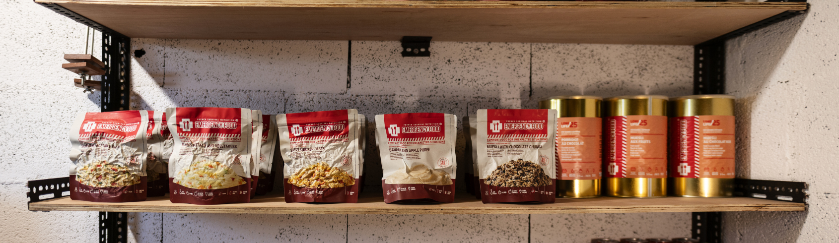 Emergency Food® propose des petits-déjeuners, des plats et des desserts en conserve ou en sachet conservables 25 ans. Conçue pour faire face aux situations les plus critiques, la gamme Emergency Food est composée de 19 références prêtes à consommer après quelques minutes de réhydratation. Fabriqués en France, et déclinés en version sans lactose, sans gluten ou vegan, nos produits s'adaptent à presque tous les régimes alimentaires et quasiment non périssables.